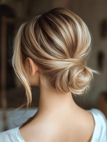 There are no prohibitions in wearing updos with fine strands as you only need the technique. A dishevelled low bun is the addition that provides softness and volume as well as makes the hair look thicker than otherwise.