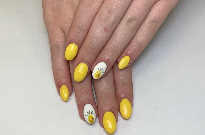 White floral art or natural nail leaves can be paired with lemon yellow, or be used as accent nail with neutral colours. This light, but gentle spring nail design is a reflection of the festive mood in the season.
